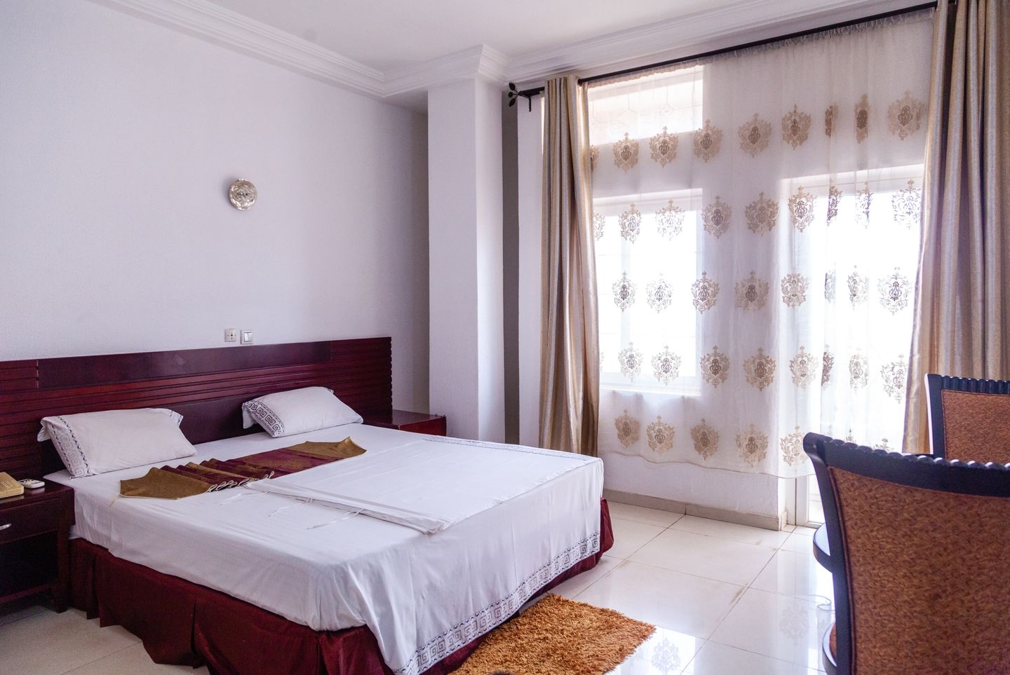 A Porto-Novo, à quelques encablures des musée HONME, ADANDE, DA SILVA, ILOUGBE, où vous découvrirez un patrimoine historiques de choix, c’est un hôtel majestueux, comme le client s’en apercevra dès qu’il aura posé ses valises. Aux couleurs atypiques mais qui offre un luxe et des équipements intérieurs de choix, hors tout entendement. Salles de conférences, Parking souterrain en toute discrétion, service lingerie, bureautique, Accès Internet Haut débit par WI-FI, fonctionnel partout et dans toutes les chambres pour communiquer à travers le monde, service pizza à toute heure.